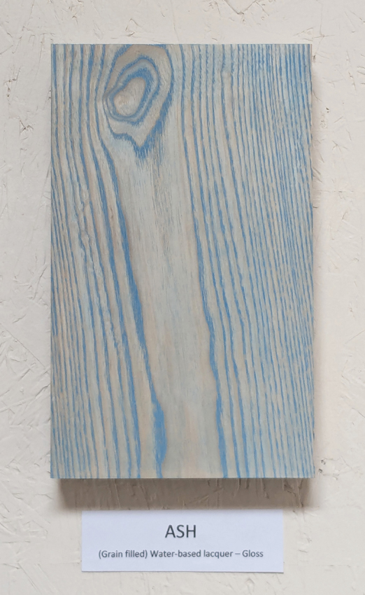 You will make six Ash wood sample pieces and apply different finishes to each one. They will demonstrate four different sheen levels (ultra matt, matt, satin and gloss) and will incorporate both interior and exterior finishes as well as water based, oil and wax finishes. You will prepare a grain filled sample, thus creating a “flat finish”, choosing a colour to either blend with the Ash or contrast thereby creating a decorative feature. You will also create a stained sample, choosing from a selection of colours.